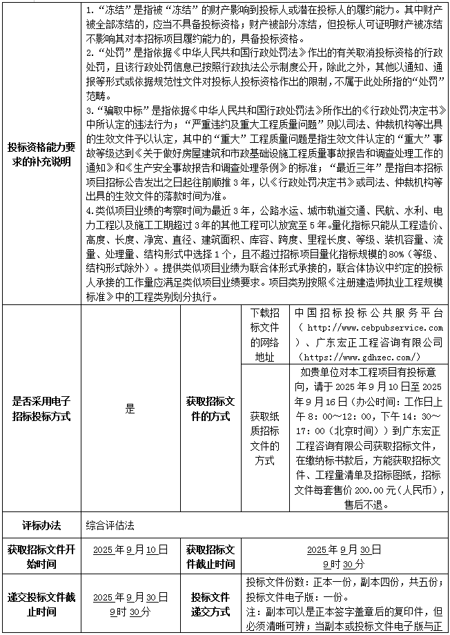 1.法人资格(如为联合体投标,则联合体各方均需提供) 1.1中国境内企业,应具有独立法人资格(设计师事务所除外)并依法取得有效的营业执照(仅设计单位允许中国境内企业): 1.3中国境外的施工企业,投标人必须是泰国境内按照泰国相关法律法规注册的中资企业。 1.4中国境外的设计企业,投标人必须是获取泰国注册设计师等资格要求的团队。 2. 对投标人资质要求: 2.1.施工资质:具有泰国属地DBD文件,并包含建筑施工服务内容。 2.2设计资质:中国境内企业应具有承接本招标项目所需的工程设计综合甲级资质或工程设计建筑行业甲级或工程设计建筑行业建筑工程专业甲级或(建筑、结构、机电)设计师事务所甲级资质,并能按泰国当地设计规范出具有效的施工设计等图纸;境外企业按上述1.4要求执行; 3.投标人须由法定代表人对《诚信投标承诺书》签字,并加盖单位公章。(如为联合体投标人,则联合体各方分别提供) 4.对投标人拟派项目负责人的要求(如为联合体投标人,项目负责人由联合体牵头单位提供) 4.1对拟派项目负责人的资格要求:须具备注册于投标人本单位的建筑工程专业一级建造师注册证书,持有有效的《安全生产考核合格证(B证)》。 4.2拟派驻项目负责人没有在其他在建项目中担任工程总承包项目负责人、施工项目负责人。 4.3需提供投标人或投标人中国关联公司近期(自本招标项目招标公告发出之日起往前顺推6个月,即2025年3月至2025年8月)为拟派项目负责人缴纳社保资金的有效社保证明材料,以投标人(或其分支机构)所属当地社保管理部门出具的证明材料扫描件为准。 5.对投标人拟派施工负责人的要求(如为联合体投标人,项目施工负责人由联合体负责施工的单位提供;如投标人为境外企业,项目施工负责人注册单位为投标人中国关联公司) 5.1对拟派项目施工负责人的资格要求:须具备注册于投标人本单位的建筑工程专业一级建造师注册证书,持有有效的《安全生产考核合格证(B证)》。 5.2拟派驻项目施工负责人没有在其他在建项目中担任项目负责人。 5.3需提供投标人或投标人中国关联公司近期(自本招标项目招标公告发出之日起往前顺推6个月,即2025年3月至2025年8月)为拟派项目施工负责人缴纳社保资金的有效社保证明材料,以投标人(或其分支机构)所属当地社保管理部门出具的证明材料扫描件为准。 5.4项目负责人可兼任本项目拟派的施工负责人。 6. 对投标人拟派项目设计负责人的要求(如为联合体投标人,项目设计负责人由联合体负责设计的单位提供;如投标人为境外企业,项目设计负责人注册单位为投标人中国关联公司) 6.1对拟派项目设计负责人的资格要求:须具备建设行业主管部门颁发的注册于投标人本单位的一级注册建筑师注册证书。[注:设计项目负责人应符合《建筑工程设计单位项目负责人质量安全责任七项规定(试行)》要求] 6.2需提供投标人或投标人中国关联公司近期(自本招标项目招标公告发出之日起往前顺推6个月,即2025年3月至2025年8月)为拟派项目设计负责人缴纳社保资金的有效社保证明材料,以投标人(或其分支机构)所属当地社保管理部门出具的证明材料扫描件为准。 7.对投标人企业的信誉要求投标人未被列入“信用中国”网站(www.creditchina.gov.cn)“记录失信被执行人或重大税收违法失信主体或政府采购严重违法失信行为”记录名单;不处于中国政府采购网(www.ccgp.gov.cn)“政府采购严重违法失信行为信息记录”中的禁止参加政府采购活动期间。(以资格审查人员于投标(响应)截止时间当天在“信用中国”网站(www.creditchina.gov.cn)及中国政府采购网(http://www.ccgp.gov.cn/)查询结果为准,如相关失信记录已失效,供应商需提供相关证明资料)。(如为联合体投标,则联合体各方均需满足) 8. 上述投标企业应遵守泰国《外商经营法》等法律文件组织实施工作。 |