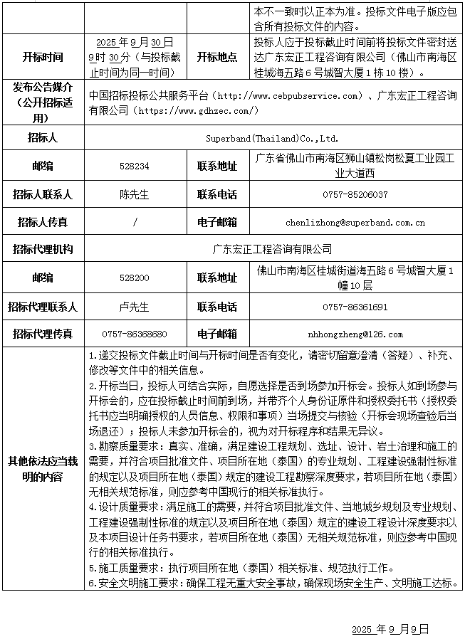 泰国奔达生产基地项目勘察设计施工总承包 招标公告